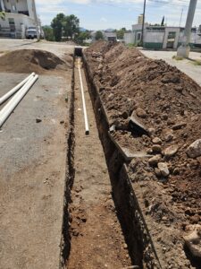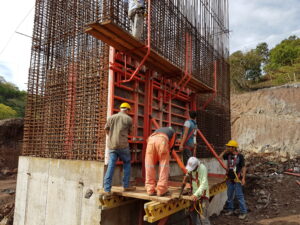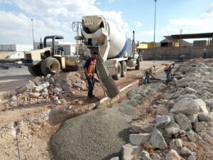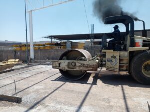 Construcción de muros de contención, nivelación de terreno y pavimentación de superficies de trabajo